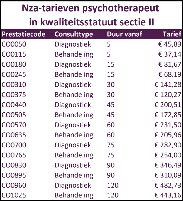 De NZa-tarieven psychotherapeut verzekerde zorg: